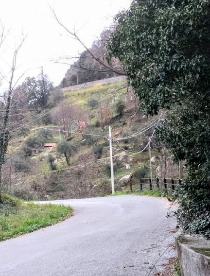 Superata casa Campo Mattia (223 m.), caratteristica casa rurale isolata tra prati, frutteti, campi e boschi generalmente a castagno, a sinistra si intercettano una sterrata e una parete rocciosa di serpentino scuro: qui è possibile rinvenire abbondanti spalmature friabili di amianto fibroso di colore bianco-argenteo.